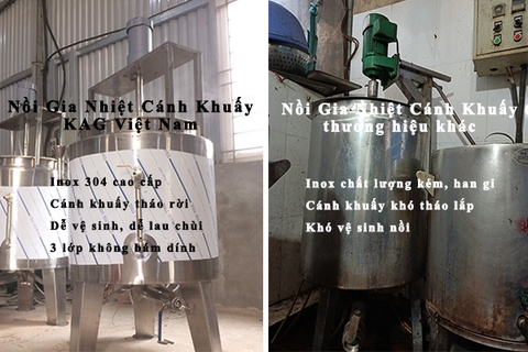 Nồi gia nhiệt cánh khuấy tự động KAG Việt Nam (phải) và Nồi gia nhiệt cánh khuấy giá rẻ sản xuất trôi nổi (trái)
