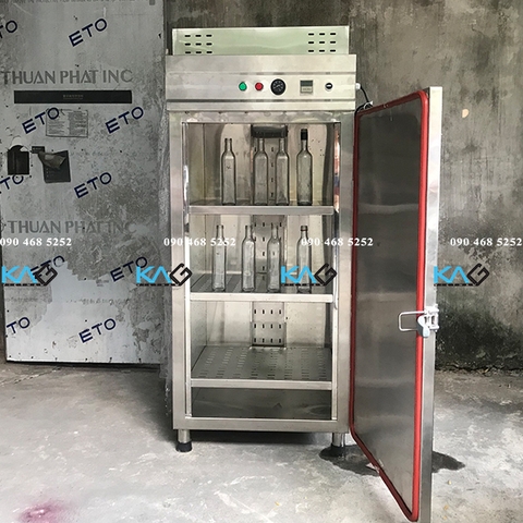 Máy sấy chai thuỷ tinh vận hành tự động với bộ điều khiển thời gian và nhiệt độ trên bảng điều khiển. Toàn bộ thân máy được chế tạo từ inox không gỉ nên việc vệ sinh thiết bị dễ dàng, thuận tiện. Lớp vỏ máy được thiết kế chống nóng, cách nhiệt, không làm nóng không gian sản xuất và tránh làm bỏng, tai nạn lao động. Các khay để chai thiết kế thông minh, không làm xô lệch, nghiêng đổ chai, đồng thời tận dụng tối đa diện tích của tủ sấy. Tủ Sấy chai lọ có tác dụng như sấy khô, diệt khuẩn, và tiệt trùng các dụng cụ dùng trong các thí nghiệm, các sản phẩm đầu vào hoặc đơn giản là một công đoạn cần thiết để diễn ra phản ứng hóa, lí mong đợi.