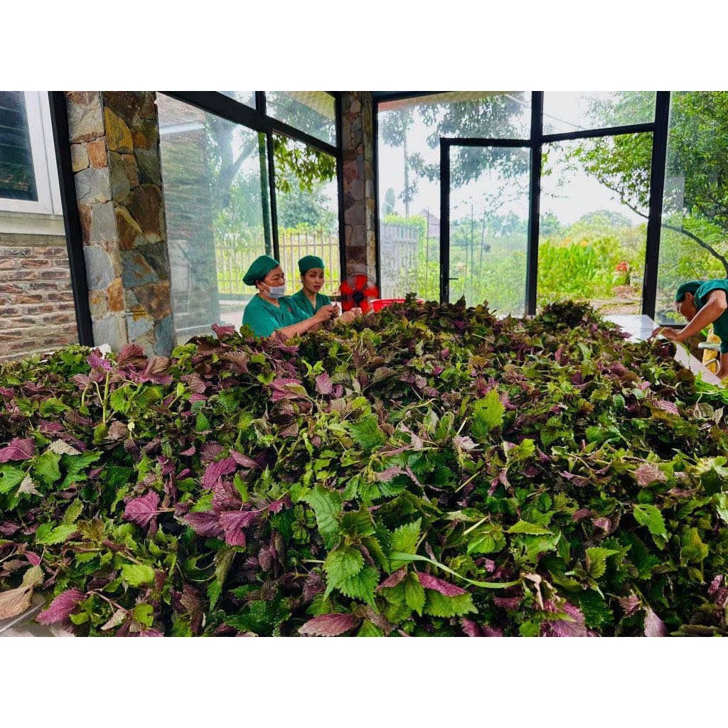 Khi đã có vùng nguyên liệu tại chỗ ổn định, chị Xuân đã đầu tư gần 2 tỷ đồng để mua máy móc thiết bị chiết xuất tinh dầu, thiết bị làm cao, sấy làm trà tía tô. "Tía tô có rất nhiều loại giống nhưng mỗi loại lại sử dụng vào mục đích khác nhau, nếu như chọn loại để làm trà uống thì phải chọn loại lá 2 mặt đều màu tím đỏ bản địa Sa Pa, còn cây chỉ để lấy tinh dầu thì mặt lá phía trên xanh, dưới lá màu tím đỏ mùi dịu, không hắc..." - chị Xuân cho hay.